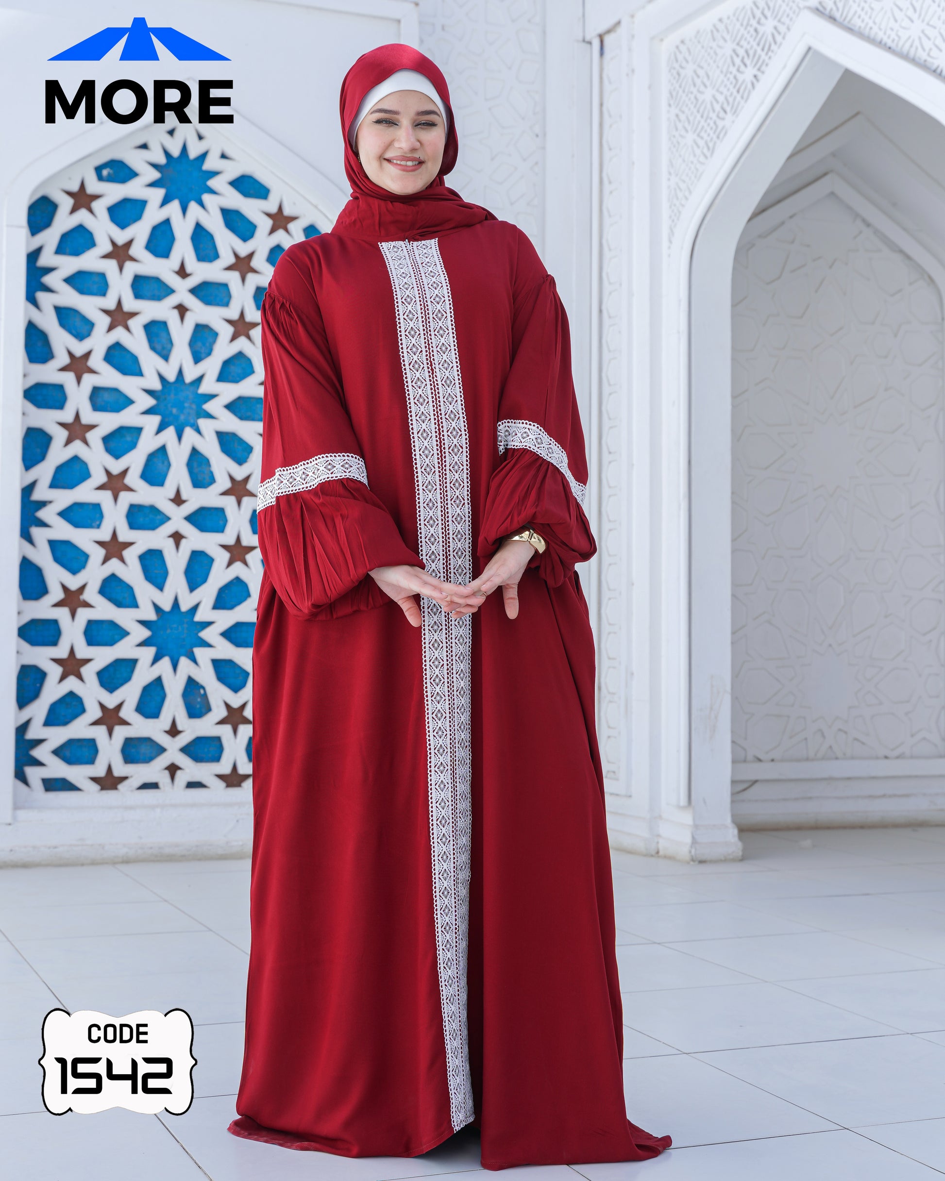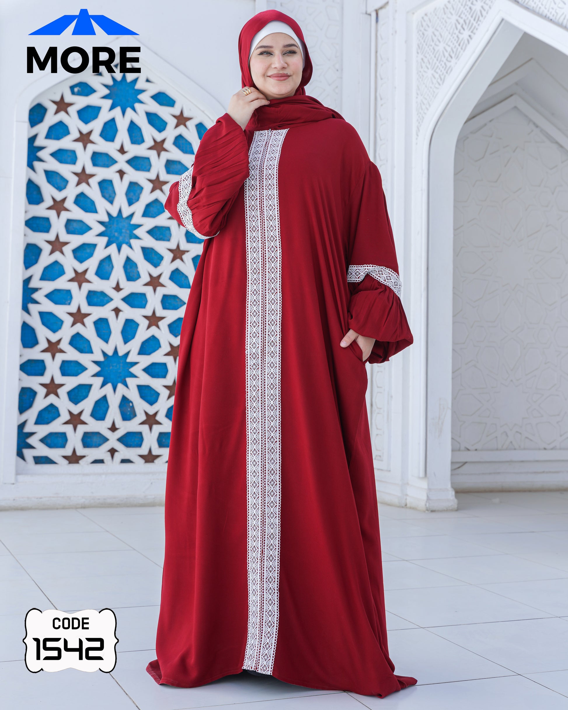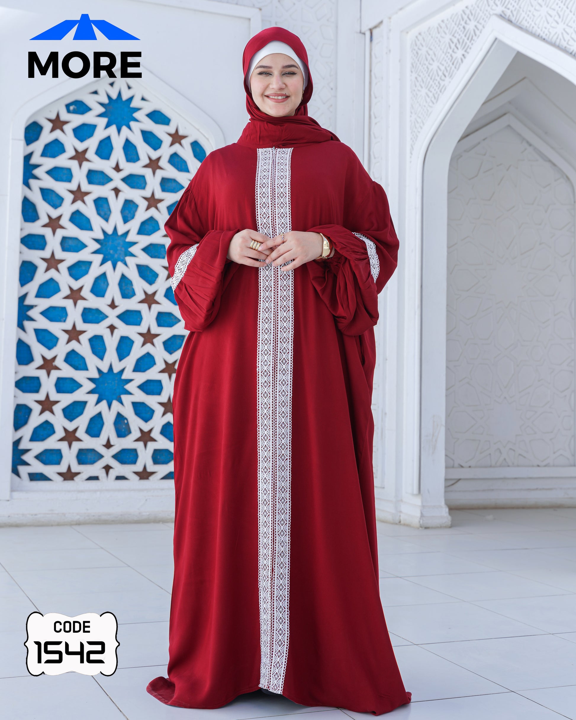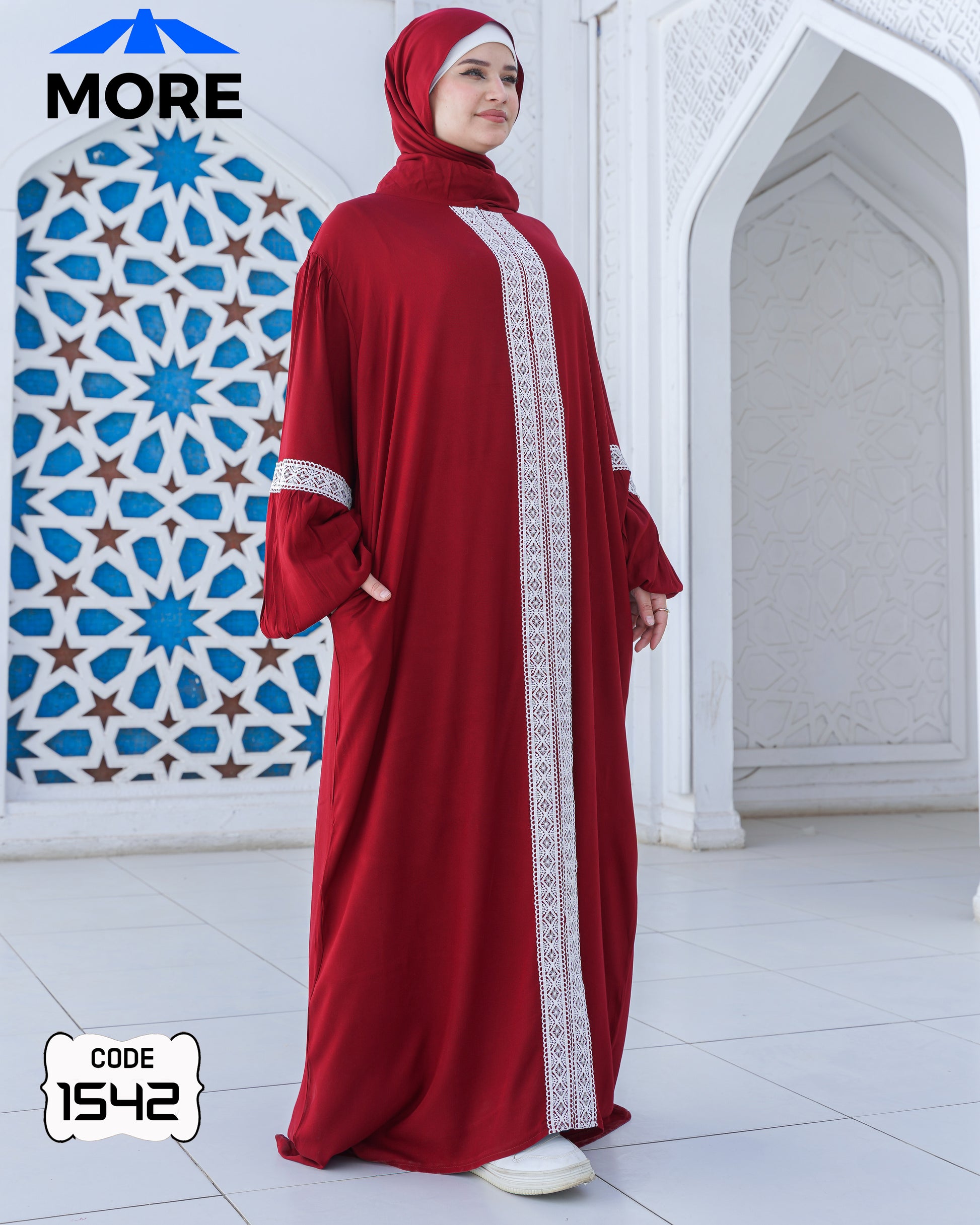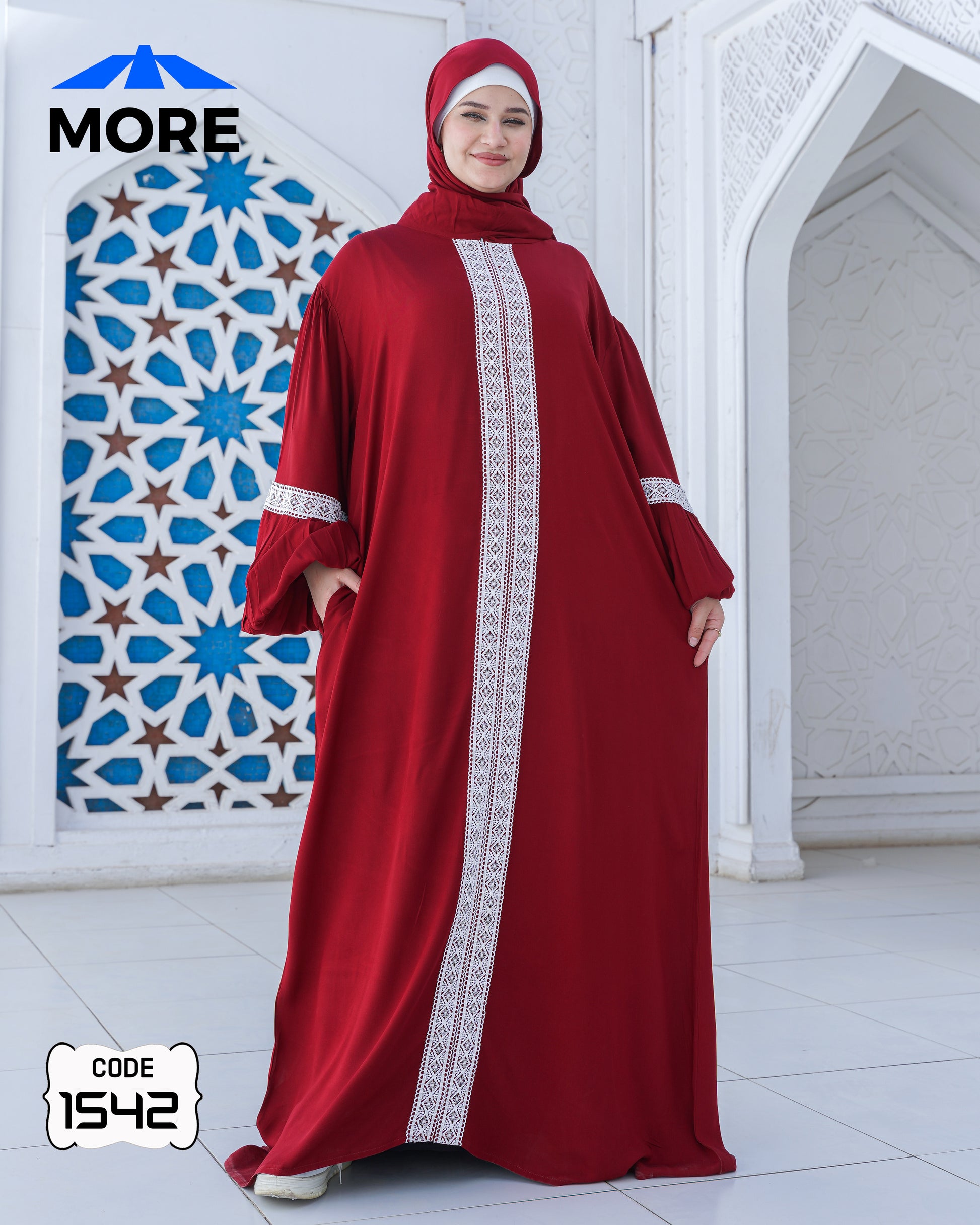 إسدال صلاة حريمي واسع فسكوز قطن 100% بدانتيل – كود 1542